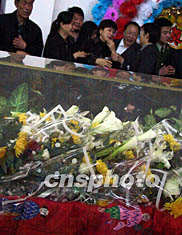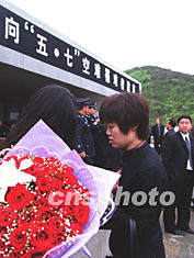 ![]() 十六日,人们沉痛地怀抱鲜花聚集大连殡仪馆,向“5·7”空难中逝去的亲人好友作最后告别。王丽南 摄