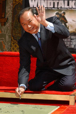 图:中国香港著名导演吴宇森留印好莱坞 2002年05月22日 12:53 5月21日,中国香港著名导演吴宇森在美国影城好莱坞的“中国戏院”前的水泥地板上印上了自己的手印和足印。法新供中新