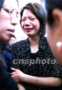 台湾华航空难者家属在松山机场等待飞往澎湖的班机。中央社摄/中新社