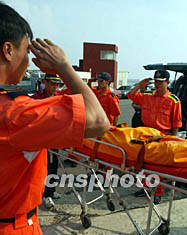 图:台湾搜救人员向空难遗体敬礼 2002年05月27日 11:31 ![]() 台湾搜救人员向华航空难海域捞回的遇难者遗体敬礼致哀。中央社摄/中新社