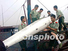 图:泉州渔民捞获大型飞机残骸 2002年06月01日 20:15 ![]() 31日下午4时许,泉州石狮市“闽狮渔2292号”渔船将打捞到的一块华航客机残骸交给祥芝边防派出所。这块外表乳白色的飞机残骸长4.2米,宽1.4米,约重一百斤,呈三角形状。这块残骸是5月29日下午4时许,渔船在东经119度39分、北纬24度28分海域生产作业时捡获的。作者:徐承彬