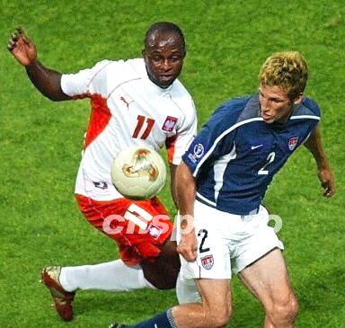 图:波兰3:1美国 奥利萨德贝与哈久克争抢 2002年06月14日 21:44 ![]() 韩日世界杯D组波兰队与美国队的比赛结束,比分为波兰队3-1战胜美国,11号奥利萨德贝为波兰队先入一球,9号克里扎洛维茨攻入第二球,14号泽瓦拉科夫攻入第三球。美国队21号多诺万攻入一球。图为波兰队奥利萨德贝与美国哈久克争抢。