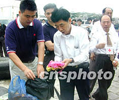 图:华航失事客机残骸移交台湾 2002年06月18日 15:00 ![]() 泉州渔民在海上打捞的5、25台湾华航失事客机的残骸,6月17日由中国红十安会移交台湾红十字会,交接仪式在石狮祥芝码头举行。华航CI611客机失事后,泉州渔民共在海上打捞尸体12具,客机残骸遇难者物品19件。图为中国红十会代表向华航公司代表清点飞机残骸和遇难物品。作者:吴刚强
