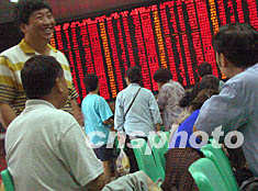 图:深沪股市受国有股减持停止影响大幅攀升 2002年06月24日 16:19 ![]() 受国务院“停止利用国内证券市场减持国有股”决定的影响,二十四日中国深沪股市跳空9%高开,其后,全线飘红保持至收盘。当日北京市各证券营业大厅里人声鼎沸,股民奔走相告,准备乘利好消息早日获利。中新社记者 邹宪 摄