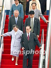 组图:江泽民抵港参加回归庆祝活动 2002年06月30日 18:34 ![]() ![]() 中国国家主席江泽民和夫人王冶坪,6月30日下午乘专机抵达香港,出席香港回归祖国五周年大会暨香港特区第二届政府就职典礼活动,香港特区行政长官董建华登机迎接。任晨鸣 摄