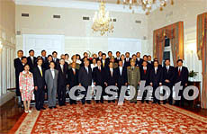 图:江泽民主席与香港特区政府高官及知名人士合影 2002年06月30日 22:01 ![]() 六月三十日,国家主席江泽民在香港礼宾府会见七月一日上任的第二届香港特区政府“高官”及知名人士,图为江泽民主席与他们合影。潘索菲 摄