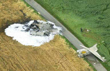 图文:俯瞰飞机残骸 坠机现场惨不忍睹 2002年07月02日 19:58 德国当地时间7月1日夜(北京时间2日晨),一架DHL公司的波音757货机和俄罗斯巴什基尔航空公司的图-154客机在德国巴登-符腾堡州于伯林根镇上空相撞并坠毁,至少已造成71人死亡,其中包括52名儿童。图为俯瞰散落在地上的飞机残骸。(春风)