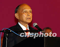 图:霍英东祝贺董建华连任第二届政府行政长官 2002年07月04日 10:58 ![]() 七月三日,香港广东社团总会在香港举行庆祝香港特区政府成立五周年以及董建华连任第二届特区政府行政长官联欢宴会。该会总监霍英东致词。中新社图潘索菲摄