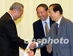 图:钱其琛会见台湾知名企业家大陆考察团 2002年07月05日 20:15 ![]() 中国国务院副总理钱其琛五日在北京会见由辜濂松(左一)等组成的“台湾知名企业家大陆考察团”一行。作者:郑萍萍