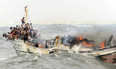 图:台湾海上船屋"元胜"号在高雄外海失火