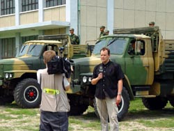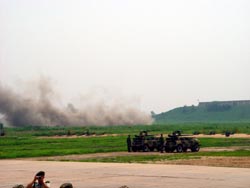 多图:最大规模的外国记者团受邀参访解放军军营 2002年07月11日 10:30 ![]() 摩托化步兵196旅进行实弹演习 ![]() 外国记者关注中国军队 ![]() 芬兰广播公司记者现场报道 ![]() 美国国际公众电台记者采访空24师飞行员 ![]() 空24师政委同日本时事社记者交谈,以上图片均据外交部网站 中新网北京7月11日消息:2002年7月10日,中国外交部外国记者新闻中心组织外国驻京记者参观采访中国人民解放军摩托化步兵196旅和空24师,共有来自63家媒体的105名驻华记者参加,外交部新闻司司长孔泉说,如此大规模地组织外国记者走进中国军营,多年来还是第一次。 据外交部网站消息,196旅隶属于北京军区,其前身是步兵第196师,目前担负着保卫北京和天津,守卫海防的任务。该旅下设10个营,共有3500名官兵。 记者们参观了该旅的军官训练中心、生活服务中心和连队,观看军事科目表演,与战士共进午餐并自由交谈。在参观过程中,记者们还询问了有关部队的编制、训练生活情况、发展前景以及部队对台湾、国际军事合作等问题的看法。该旅旅长胡东敏对他们的问题一一作了回答。 空24师建立于1951年,目前主要担负北京、天津和华北地区东北部的防空作战任务。该师下设2个战斗团,1个“八·一”飞行表演队和4个场站,约有飞行员100人。记者参观了该师定检厂房和静态飞机,观看了训练飞行。该师师长王伟详细介绍该师情况并回答了记者们提出的问题。
