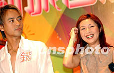 图:香港歌星杨千桦出席新城电台台庆记者会 2002年08月05日 21:59 ![]() 即将举办个人演唱会的香港歌星杨千桦(右),8月5日出席新城电台台庆记者会时与李克勤玩游戏七情上脸。 洪少葵 摄