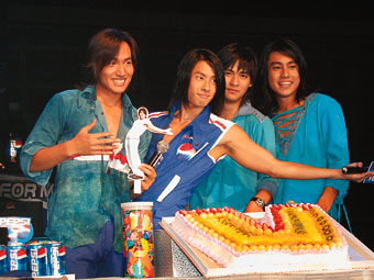 吴建豪过生日 F4和歌迷一起开心祝“大”寿(图) 2002年08月08日 09:42 ![]() F4成员为吴建豪(左二)贺生辰 中新网香港8月8日消息:F4前日旋风袭港出席百事的首播会,其后只有吴建豪多留港一天,除了跟歌迷共庆生日外,还为新歌《听身体唱歌》招募MV女主角,另三位成员已先行返台湾。 据此间文汇报报道说,前晚的首播会上,吴建豪和言承旭突然走下台与歌迷握手,引起现场一度混乱,受到歌迷的热情感染,言承旭和朱孝天来了两下“胸顶胸”,教歌迷看得怦然心动。吴建豪和仔仔周渝民差点被歌迷的热情感动得掉下泪来,一些歌迷更送上生日礼物给寿星仔吴建豪。 活动完毕后,他们便拉队到郭富城的餐听为建豪庆祝生日,城城虽没有出现,也送来蛋糕和鲜花。 寿星仔吴建豪昨午继续同二百位歌迷庆祝,期间他以广东话向在场歌迷说:“我爱你,多谢。”他又很留心看八位候选的女主角,他对各人的表现都很满意。有位参赛者更表演一字马,惜未能为她取得更高分。 吴建豪切生日蛋糕时,突然兴奋得拿着切蛋糕的刀转圈,似是在耍杂技,切过蛋糕后,他迅速舔一舔刀上的蛋糕。其后,他表示因在小时候没有太多朋友,便经常拿刀当玩具般玩。 问到刚挑选出来的MV女主角,到时建豪和她可有亲热镜头,建豪磨拳擦掌说:“不知道,要看导演的安排,相信歌迷知道我是工作,不会生气。”