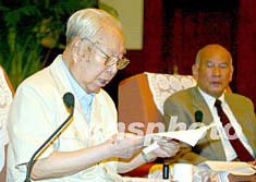 ![]() 黄埔军校同学会在京理事九日举行座谈会,谴责陈水扁的“台独”言论。图为黄埔军校同学会会长李运昌在会上发言。毛建军 摄
