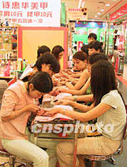 广州时兴妆扮指甲,双休日美甲店里坐满了美甲女郎。作者:邢健