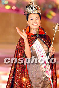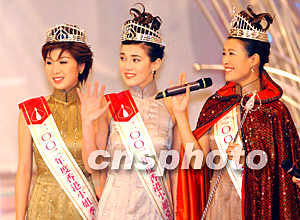 ![]() 2002年度香港小姐竞选活动11日晚结束,芳龄 21岁的大学生林敏俐,艳压迫群芳夺得冠军,同时获新世纪美态奖和国际亲善小姐,连中三元。洪少葵 摄
