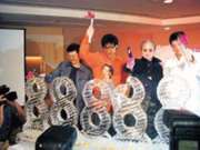 苏永康带笑谢歌迷:我回来了(附图) 2002年08月14日 10:26 ![]() 歌迷的打气信给康仔很大的鼓励 ![]() 苏永康主持破冰仪式寓意新开始 中新网香港8月14日消息:包含“重新出发”与“新专辑庆功”双重意义的苏永康“SUPER NICE”记者会13日下午在远东饭店举行。 据明报报道,康仔在记者会上神情显得轻松自在。苏永康说,这段接受勒戒的日子里,他深深感受到家人、朋友、歌迷带给他的爱与关怀,这是他三十多年首次如此深切的体验。 唱片公司特别为康仔安排“消灾解厄仪式”,希望他远离灾难、重新出发。该仪式先是过火盆,再来是喷柚子叶水,最后吃猪脚面线,另外苏永康也击破一座“88888”的冰雕,象征着他的唱片专辑卖得非常成功,突破8万8千888张。整个活动尴尬的气氛被“庆功”的意味给冲消掉了。(林佳宏)
