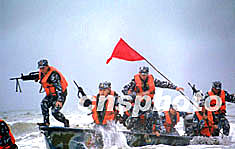 图:中国海军陆战队进行抢滩登陆演练 2002年08月15日 10:56 ![]() 中国海军陆战队八月以未来登陆作战复杂气象条件进行实战演练,特种分队在倾盆大雨中抢滩登陆。韩海冰 摄