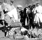 台湾展出日本侵台惨照 吁靖国神社除去先人姓名 2002年08月16日 14:24 ![]() 1913年日军侵犯台湾泰雅部落实施「三光政策」时惨绝人寰的砍头镜头。(台湾《民生报》图) 中新网香港8月16日消息:台北讯,昨天是日本无条件投降五十七年纪念日,一项名为“送历史回部落”的出发仪式在台北市“二·二八纪念馆”前举行,台湾原住民女“立委”高金素梅强烈呼吁日本政府,将所谓“高砂义勇队”的台湾原住民姓名从靖国神社的祭拜名册中删除。 台湾“部落工作队”成员张俊杰指出,1913年至1914年间,日军攻打台湾北泰雅,厉行杀光、抢光、烧光的“三光政策”,日军从桃园复兴乡向东越过台湾中央山脉,攻到花莲太鲁阁,造成泰雅族原住民重大伤亡。 高金素梅指出,大举杀戮之后,日军对台湾原住民实施“蕃童特别教育”,导致大多数泰雅族同胞不知日军曾以“三光政策”杀勠部落;而幸存的幼童长大后,还参加日军召募的所谓“高砂义勇队”前往南洋参战,结果战死两万多人,而他们的姓名竟被日本列入靖国神社,与战犯、刽子手并列接受祭拜。 日前高金素梅等赴日本东京向靖国神社方面递交抗议书,要求将原住民先人的牌位撤出。但对方以“无法做主”回应。 据台湾《民生报》报道,昨天开始的该项“送历史回部落”大型照片展,展出八十张珍贵历史照片,是在1913年由日军侵台时的随军记者在最惨烈的战役中所拍,均是日军侵台大举杀害原住民的铁证,并送回日本印制成所谓“战功册”。后被台湾“二·二八”纪念馆负责人在日本的旧书摊发现带回。 明日开始至10月25日,该照片展将陆续在岛内二十所山区部落附近的中小学巡回,展出的学校沿当年日军进攻路线安排。