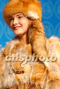 中国著名东北虎皮草集团,日前在哈尔滨举行2003年“时尚魅力玫瑰之约”新款皮草秀。图为俄罗斯模特展示新款皮草作品。钱兴强 摄