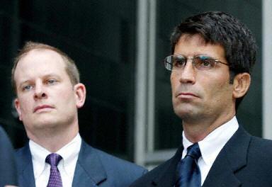 8月21日,美国能源交易商安然破产案有突破发展,公司前财务主管科帕承认串谋诈骗及洗钱罪,并愿成为控方污点证人。图为科帕8月21日在联邦法庭大楼外。