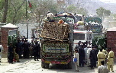 2002年8月23日在距巴基斯坦西北大约70公里的白沙瓦城市,数千名阿富汗难民在联合国难民事务高级专员办事处的帮助下,经过二十年之后重返他们的祖国。