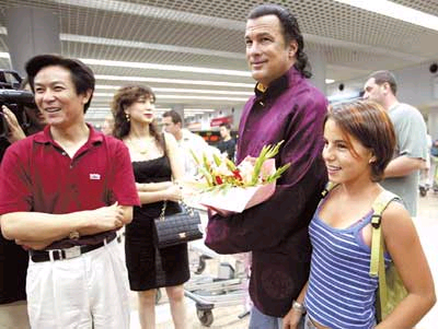 中新网北京8月26日消息:昨晚9点40分,好莱坞动作巨星史蒂芬·西格尔终于如愿以偿地抵达北京机场。另外,还有消息透露:腾格尔很有可能担任跨国巨制的史诗电影《成吉思汗》主题曲的演唱者。