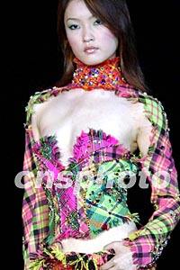 意大利著名服装名牌“盖·马帝洛”,八月首次在北京举行精品时装展示会。图为模特展示多姿多彩的女装作品。钱兴强 摄