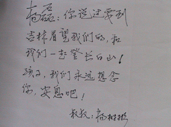 雷宇的父亲在追思会上一再表示:“五名孩子的魂不能留在雪山。”据介绍,雷宇同学于一九九八年八月以优异成绩考取北京大学电子学系,并于今年七月被免试推荐攻读电子学系硕士学位。