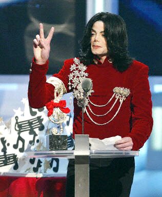 2002年8月29日,2002年MTV音乐录影带大奖在纽约RADIO CITY音乐厅举行盛大的颁奖典礼。图为出席颁奖典礼的迈克尔·杰克逊。