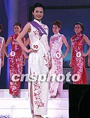 二00二年度纽约华裔小姐选美决赛昨晚在曼哈顿举行,参赛选手按规定进行了多项表演和才艺展示,当参赛选手着中国旗袍出场时,浓浓的中国韵味令人眼前一亮。作者:龚文谟