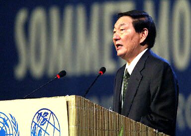中国国务院总理朱镕基3日在南非约翰内斯堡可持续发展世界首脑会议上发言。