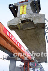 五日,随着第2550根预应力混凝土轨道梁稳稳地架设在磁悬浮工程的盖梁上,上海磁悬浮工程实现了轨道梁全线贯通。图为第2550根轨道梁架设成功。作者:汤彦俊