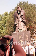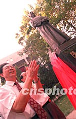 北京师范大学在百年校庆之际为老校长陈桓在校园内立了一座雕像。图为雕像的揭幕仪式