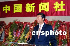 庆祝中国新闻社成立五十周年招待会9月8日晚在中国驻法国大使馆文化处举行,中国驻法大使吴建民代表使馆向中新社表示祝贺。中新社图