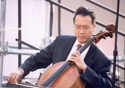 图:大提琴家马友友在“911”纪念活动上深情演奏