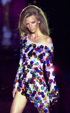 当地时间9月14日,在英国伦敦时装周上,模特展示时装设计师设计的2003春夏时装作品。