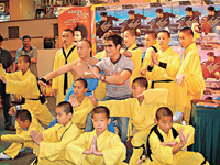 原来这班少林子弟为马来西亚的佛学会表演人员﹐得知城城举行签名会﹐连早餐也不吃赶来等城城出现﹐终得偿所愿。他们当中﹐最年少的只有四岁﹐所以一睹偶像风采后﹐还天真烂漫地与城城一起摆pose合照﹐场面极之可爱。城城说﹕“万料不到有缘会在这里遇上少林子弟﹐得以合照更是一种缘份。”由于城城要赶往机场返港﹐在时间紧迫下﹐挤满近千人的商场﹐只有五百人获得签名。
