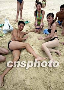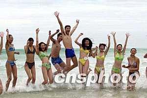 来自全国各地的35名模特选手十七日聚集海南三亚亚龙湾,参加2002新丝路中国模特大赛总决赛开赛前的最后一次选拔---“冲刺亚龙湾”的比赛。毛建军 摄