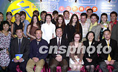 大型歌舞晚会《香江中秋夜》9月18日在香港举行新闻发布会,出席表演嘉宾阵容强劲,国内及香港当红的歌星将参与演出,图为一众内地著名艺人与节目主办单位高层会上合照。邓庆乐 摄