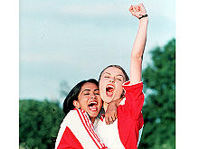 中新网9月19日电 《我爱贝克汉姆》女主角帕敏德初登大银幕,为了扮演好这个对贝克汉姆有狂热崇拜的角色,她凭着“JUST DO IT”的精神,苦练足球基本功,令导演不禁怀疑帕敏德私下究竟花了多少时间偷练?有场让帕敏德表演踢自由球的戏码居然一次就O.K,令剧组人员目瞪口呆!