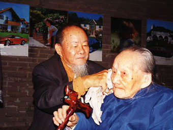 十五年来,刘治国年年回乡探母、祭祖,每年都选在中秋或清明前后。几年前,他忽然中风,后虽恢复却也有些行动不便,台湾的儿女们劝他当年就别回故乡了,可他仍挂念老母,最终还是在儿子的陪同下回到遂宁。为使母亲和弟弟有更好的生活条件,他出资在城里盖了一栋楼,供他们居住,但老母亲仍习惯居住空气清新的乡间,他还把母亲接到台湾尽孝,年迈的母亲也因住不习惯回了家乡。刘治国每次回来,都会给母亲带来大量滋补品,记者见到刘先生在喂母亲葡萄时,小心翼翼,去掉皮和籽,并一点一点喂到母亲口中。刘先生说:羊有跪乳之恩、乌鸦有反哺之义。孝道是中华民族独有的优良传统,我平时都教育儿孙一定要把它发扬下去。