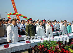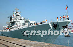 9月23日上午,中国海军舰艇编队完成环球航行任务后顺利返回青岛,中央军委副总参谋长熊光楷上将等军界首长与青岛市各界代表热烈欢迎编队凯旋。此次环球航行共计130余天,总航程达到三万多海里,创下了中国海军舰艇远航的新记录。季宇 摄