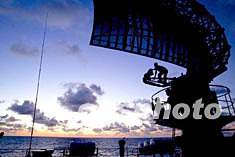 中国海军环球航行访问舰艇编队“青岛”、“太仓”两舰近日返回青岛军港。经全面检查,舰艇机械、武器装备和舰容均处于良好状态。图为官兵们在归航中于大洋上维护雷达天线。王松岐 摄