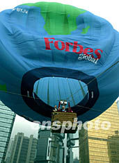 福布斯第二届全球行政总裁会议9月24日在香港开幕,硕大的“福布斯热气球”24日下午载着福布斯集团总裁史蒂夫福布斯和香港投资推广署署长卢维思在香港中环添马舰升起。任晨鸣 摄