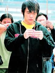 昨天彩排前的拜拜,杨峻荣和周杰伦只有虔诚一拜“不要下雨”,二拜“演出安全!”,三拜“票房满满满!”。拜完之后,周杰伦还请工作人员一定要买红辣椒挂在舞台上,看看雨神能不能为他暂停几小时。