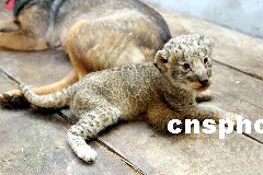 28日,福建福州森林公园动物乐园的一只“虎狮兽”与榕城媒体见面,小家伙十分可爱,头像狮子,身上和尾巴有黑斑纹,象虎,这只已存活26天的虎狮兽目前十分健康,专家预计成活稳定性已达80%,这也是全国存活天数最多的一只。祝敏松 摄