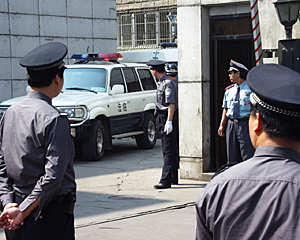 记者看到,法院门前停有二十余辆警车和三步一岗的警察,一些参加其他案件审理的人员仍有秩序地进进出出,并没有因为这件震惊全国的大案而受影响。记者发稿时,该案休庭十分钟,即将宣判。