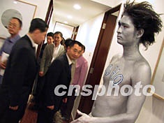 北京建国门外的SOHO“第一大道”一套四百多平方米面积的商铺,二日晚引来众多投资者参加,开发商派打扮异类的男模在门口迎候。