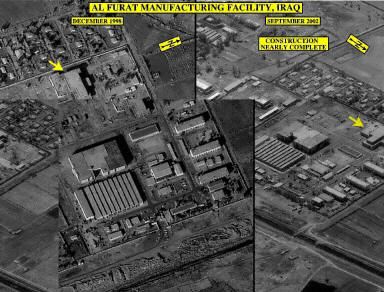 10月8日,美国政府7日公布了两张卫星照片,称上面显示了伊拉克 正在重建大规模杀伤性武器的制造设施。
